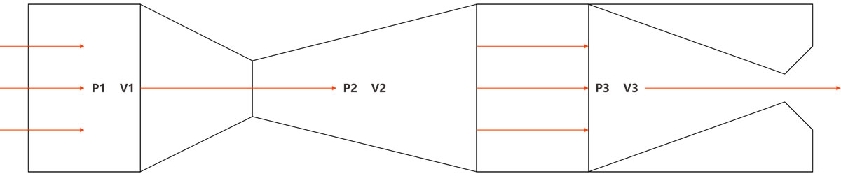 StressP1>P2>P3 Velocity of flowV1<V2<V3