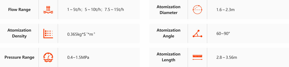 Efficient nozzles with two-stage Laval nozzle technology can significantly increase the centrifugal force of liquid sulfur. The nose of the Laval nozzle is designed to gradually shrink to a narrow throat and then gradually expand after the throat. After the liquid sulfur is accelerated through the first stage Laval nozzle, it enters the second stage nozzle, where it is accelerated again and ejected from the nozzle after passing through the narrow throat of the second stage. This structure design makes the static pressure energy of liquid sulfur effectively converted into dynamic pressure energy under the action of the cross-sectional area of the nozzle, so as to give the liquid sulfur high-speed spraying and atomization power.