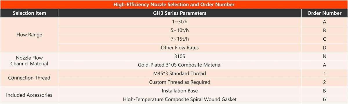 As the key component of the nozzle, the nozzle failure often leads to the shutdown of the device. The main factors of failure include clogging, leakage and corrosion of flow channels. In response to these problems, the GH3 high efficiency nozzle was created, which is made of heat-resistant 310S stainless steel and combined with gold. The nozzle uses the large flow channel through technology, the flow area reaches 376mm2, and is equipped with an anti-blocking cone, which can effectively prevent iron sulfide blockage. In addition, it also draws on the Laval nozzle technology of rocket engines, through the self-developed two-stage growth rate and fixed forced atomization technology, the use of centrifugal force and supersonic speed to achieve forced atomization of liquid sulfur. A negative pressure zone is formed at the nozzle to avoid the phenomenon of liquid sulfur dripping. The ratio of flow and pressure adjustment is 1:2 and 1:4, respectively. When the initial pressure is 0.35MPa, the effective atomization effect can be achieved. The atomization pressure of 0.90MPa can meet the requirements of full load operation. The cross section of the nozzle runner is 376mm2, including six 7mm× 9mm flow hole, with strong resistance to particulate clogging ability. 75% of atomized particles are less than or equal to 20um in diameter, ensuring that liquid sulfur atomized particles are fine and uniform, and can be quickly vaporized and burned in the sulfur burner, effectively preventing the accumulation of liquid sulfur in the furnace. The solid structure of the fog torch helps to improve the volume ratio of the sulfur burning furnace. The GH3 high efficiency nozzle and nozzle seat seal seat are threaded, and the sealing pad is a high temperature resistant metal pad, which effectively solves the sealing leakage problem caused by cold and heat shrinkage when the equipment is restarted after production, and is easy to maintain and disassemble.
