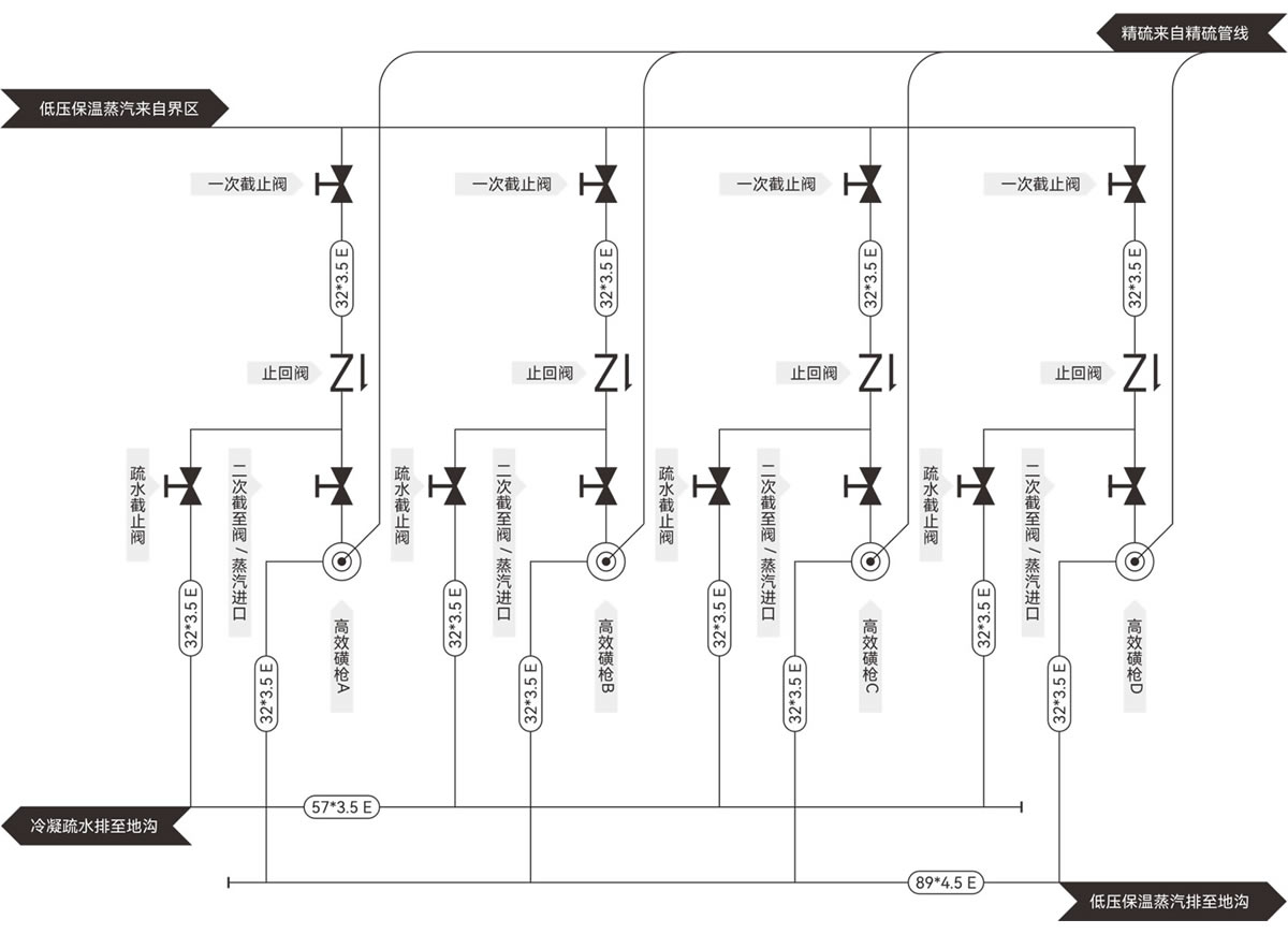 大型硫磺制酸設備能夠減少碳槍的安裝數量,降低液硫管線和附屬儀表的投資成本,節省焚硫爐平臺的空間,并減少裝置啟動和停車時磺槍安裝的工作量。