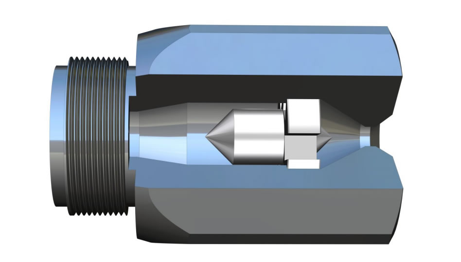 采用兩級拉瓦爾噴管技術的高效噴嘴能夠顯著提升液硫的離心力。拉瓦爾噴管的前端設計為逐漸收縮至一個狹窄的喉部隨后在喉部之后又逐漸擴張。液硫在通過第一級拉瓦爾噴管加速后,會進入第二級噴管,在那里它再次被加速,并在穿過第二級狹窄的喉部后從噴嘴噴出。這種結構設計使得液硫在噴嘴截面積變化的作用下,將靜壓能有效地轉換為動壓能,從而賦予液硫高速噴射并霧化的動力。