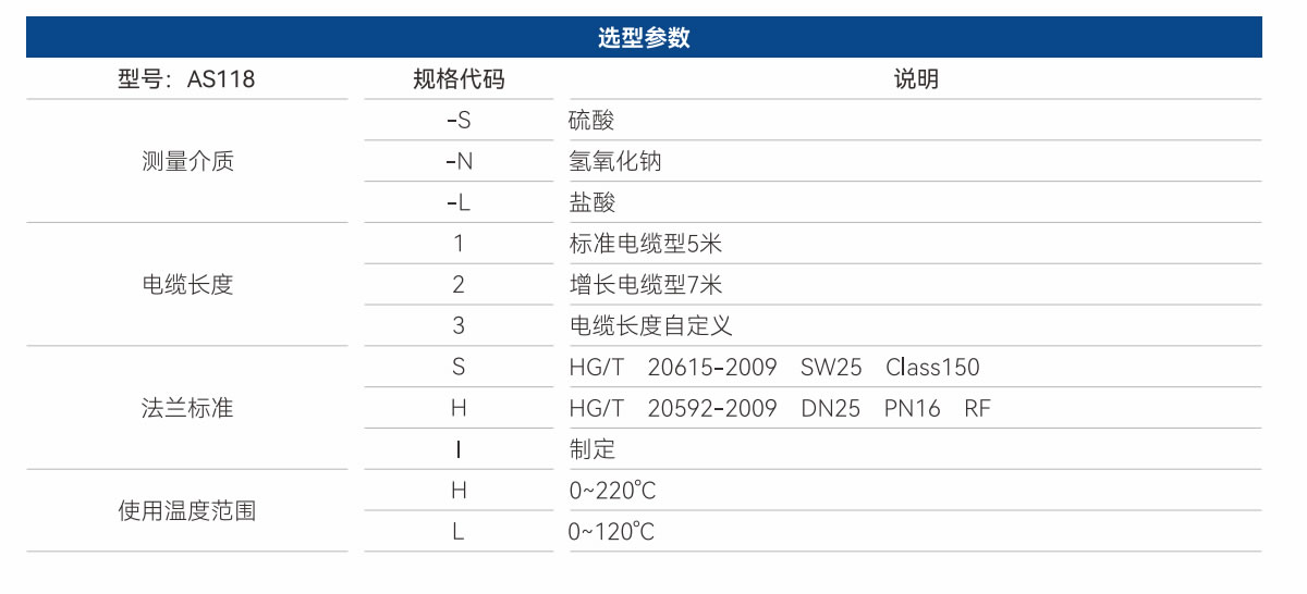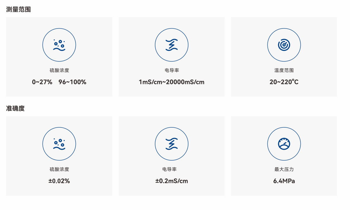 AS118傳感器適用于測量0~27%以及96~100%濃度范圍內的硫酸,同時也可用于測量堿液和含鹽溶液的濃度。其測量范圍最高可達1~20000mS/cm,特別適用于高溫環(huán)境下的濃硫酸以及易結晶堵塞溶液的濃度測定,該傳感器基于電磁感應原理設計,由一對電磁線圈構成。在測量過程中,感應元件與被測介質之間實現了完全隔離。這一對線圈中,一個作為發(fā)射器,另一個作為接收器。當線圈通電時,電解質溶液的導電性會產生感應電流,而該電流的強度與硫酸的電導率成正比。接收器線圈隨后檢測到這一電流的大小,進而計算出硫酸的電導率值。