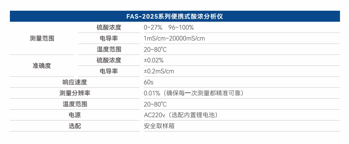 創新改變硫酸濃度測量變得準確、快速、和安全的非接觸分析技術,助力硫酸行業高質量綠色生產和智能分析。儀器采用輕量化設計,整機重量僅為2.2kg,便于攜帶與現場操作。內置高精度電導率檢測模塊和溫度傳感器,結合非接觸式測量技術,可在60秒內完成酸濃與酸溫的同步測定,測量精度達到±0.02%。支持多點數據自動存儲,最多可保存5000組測量記錄,并通過USB接口實現數據快速導出與分析。適用于硫酸生產、儲存及運輸環節的實時監測,保障工藝安全與產品質量穩定。