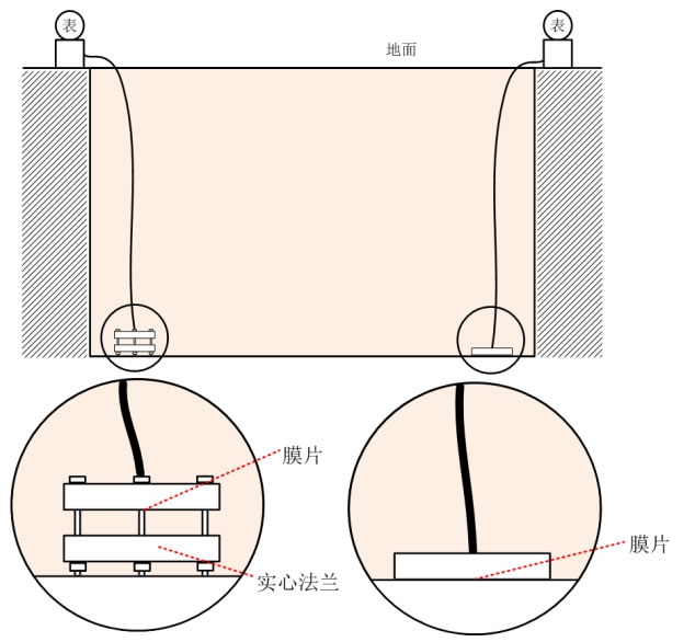 在測量過程中,應(yīng)盡量保證隔膜位于槽底。然而,若槽底沉積有少量雜質(zhì),這些雜質(zhì)將直接接觸到法蘭和膜片,影響測量結(jié)果,甚至可能導(dǎo)致膜片劃破。為避免這一問題,建議在隔膜法蘭上加裝一片法蘭作為底座。這樣,即使存在少量雜質(zhì),也能有效隔開其對測量的干擾,防止膜片因直接接觸槽底而摩擦損壞,從而起到保護膜片的作用。