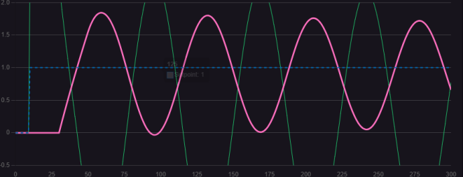 根據公式,可以明顯看出,在積分和微分不參與的情況下,PID的kp值實際上與輸出信號呈線性關系。假如輸出控制量(閥門開度)的值得范圍在 20%—70%,輸入的err范圍在50-100℃當為50℃時輸出量需要到達到20%,就需要通過比例系數來構建輸入與輸出的線性關系。對于kp,其值越大比例作用增大,可以加快調節速度,減少誤差,但是過大的比例增益會出現振蕩現象使得系統穩定性下降。下方的對比圖可以直觀展示隨著比例增益的不斷增大,會出現何種現象。