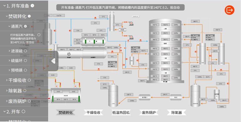 Our self-developed OTS simulation system fully takes into account the real needs and operation habits of different user groups, and is committed to creating a more user-friendly and smooth interaction experience. For beginners in the sulfuric acid industry, the interface design is simple and intuitive, combined with visual operation steps and corresponding prompts, greatly reducing the learning cost and threshold; for operators familiar with the process flow, the system is highly consistent with the actual operation logic of the factory, helping them to seamlessly connect and work efficiently. (The picture shown is for reference only and does not represent the final online effect.)