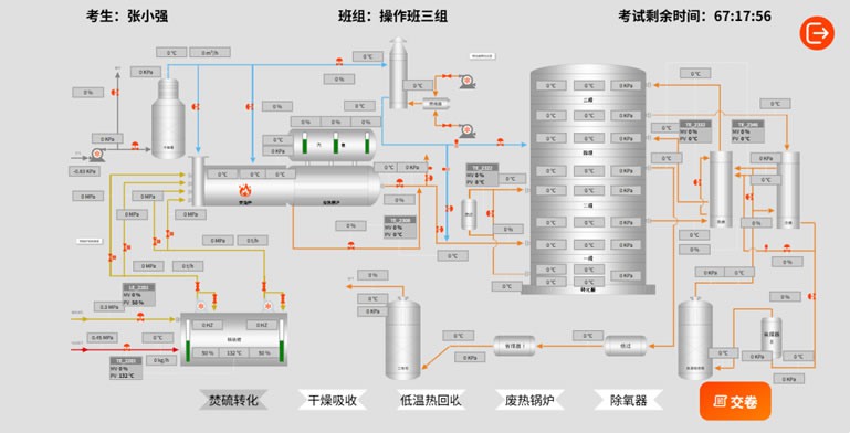 The fault handling mode incorporates user-defined common operation fault scenarios, and can also realistically reproduce typical fault cases from the history of the sulfuric acid plant. This helps operators immerse themselves in the process of reviewing the accident, thereby enhancing their ability to identify abnormal conditions and handle emergencies.