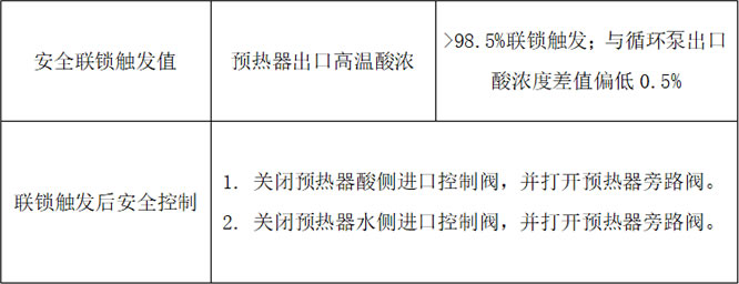 當預熱器內部發生水泄漏,能及時發現預熱器出現水泄漏,硫酸濃度低于安全值后觸發安全聯鎖并恢復至安全狀態。以此來保護后端設備免受嚴重腐蝕。