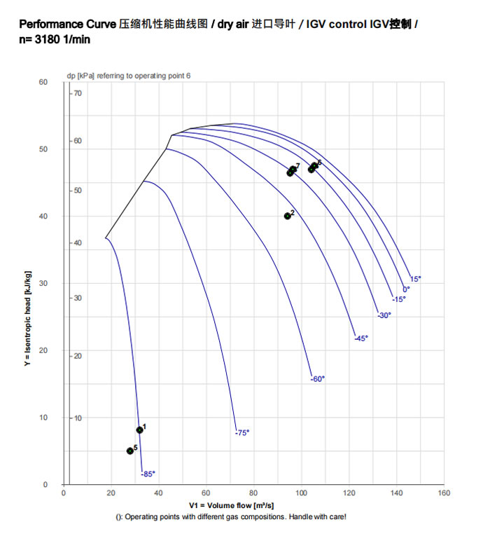 1.1 當(dāng)流量過小,流量降到該轉(zhuǎn)速下的喘振流量時發(fā)生,由風(fēng)機(jī)特性決定,在轉(zhuǎn)速一定的條件下,一定的流量對應(yīng)于一定的出口壓力或升壓比,并在一定的轉(zhuǎn)速下存在一個極限流量——喘振流量。當(dāng)流量低于這個喘振流量風(fēng)機(jī)便不能穩(wěn)定運(yùn)行,發(fā)生喘振。上述流量,出口壓力,轉(zhuǎn)速和喘振流量的綜合關(guān)系構(gòu)成風(fēng)機(jī)的特性線,也叫性能曲線。相反在一定轉(zhuǎn)速下使流量大于喘振流量就不會發(fā)生喘振。