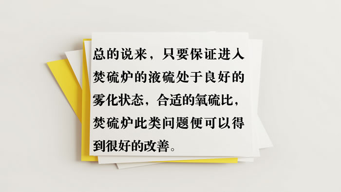 例如:磺槍霧化效果不好,導致燃燒不充分,從而在底部堆積。雖然氧硫比符合工藝,但其燃燒速率不夠,就會導致升華硫隨著高溫氣體進入后續工段。