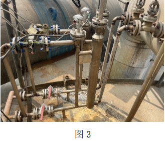 1.低溫余熱回收系統(tǒng)的硫酸濃度調(diào)整是通過加水實現(xiàn)的,加水量設(shè)計是采用自動控制,其過程變量也是一級循環(huán)上塔硫酸濃度。因此一級循環(huán)上塔酸濃在低溫余熱回收系統(tǒng)中既是保護裝置的安全儀表,也是測量儀表。當一級循環(huán)酸濃無法準確測量時,由于生產(chǎn)負荷的變化,難免會造成一級酸濃低于φ(H2SO4)99.00 %,加速腐蝕,造成余熱回收塔壁、蒸發(fā)器、換熱器、泵和一級分酸器腐蝕嚴重。
