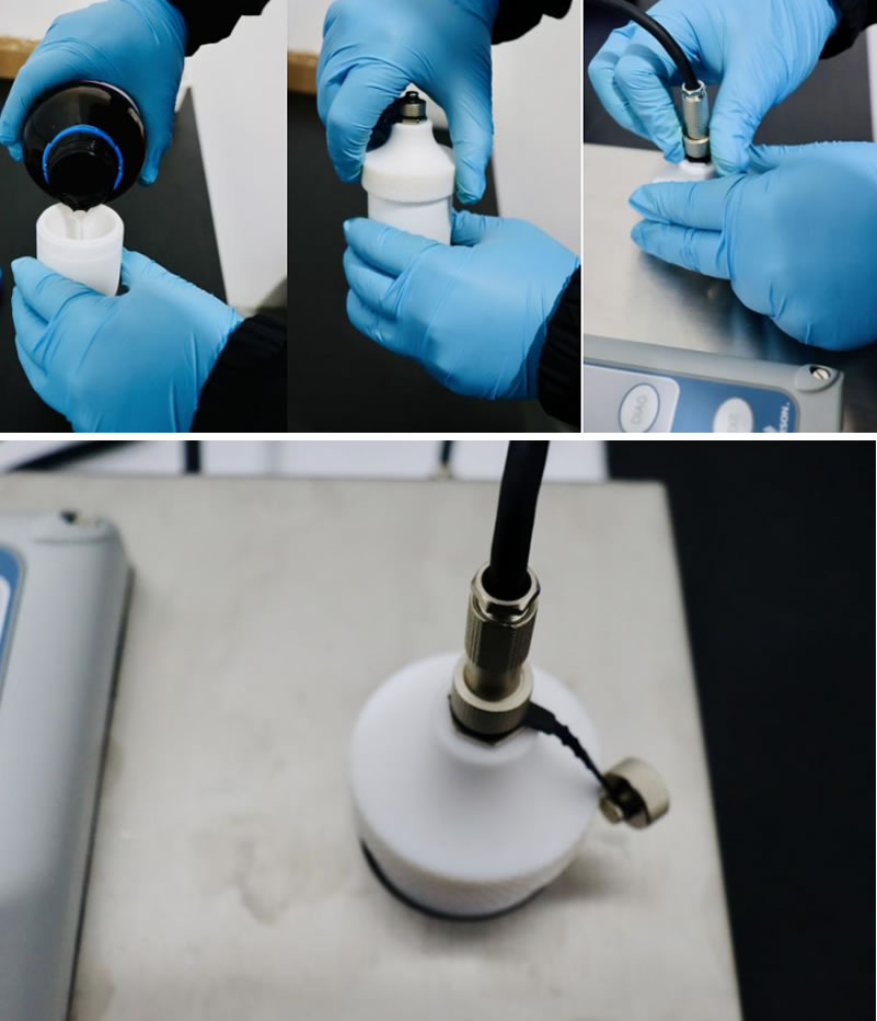 4、完成所有硫酸測量后,將溫度保護蓋與測量杯一起置于清水下沖洗幾分鐘,待蓋子和測量杯的硫酸被徹底沖洗干凈后,使用紙巾或棉布將其擦干即可。